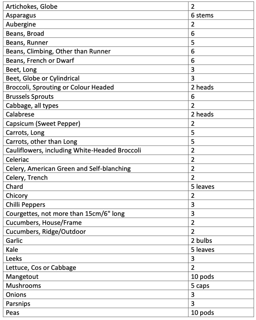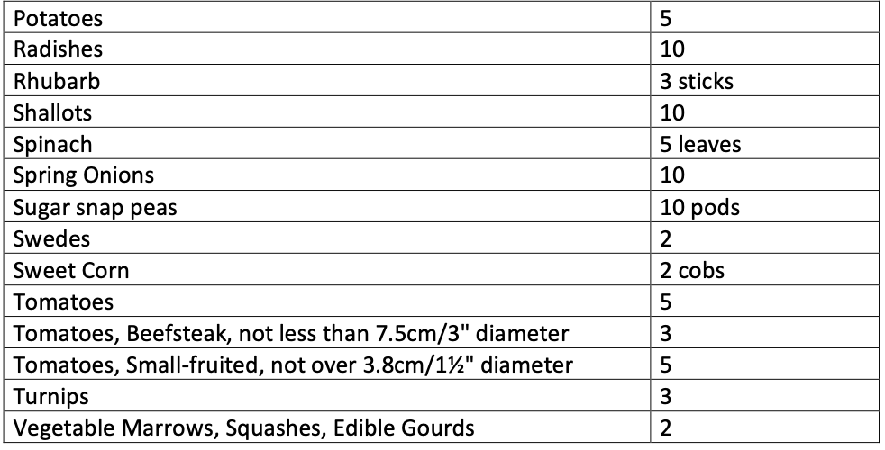 Each vegetable will be awarded points out of 10 for presentation, uniformity, size, shape and colour